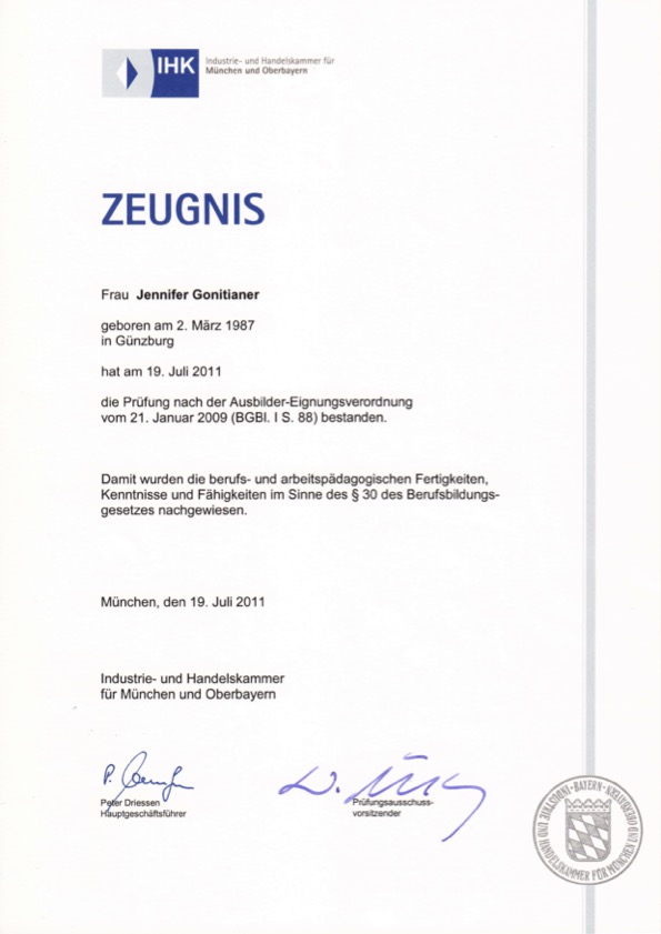 09|2007 – 07|2009 Auszubildende Kauffrau für Marketingkommunikation
